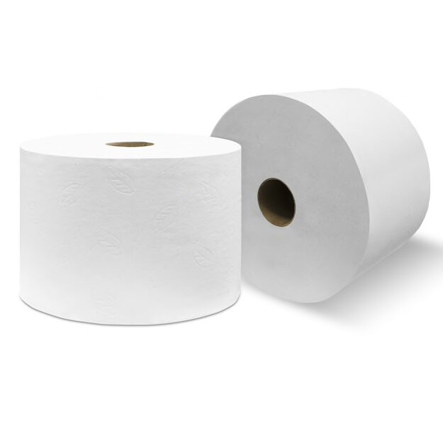El sistema patentado de papel higiénico pre cortado, ayuda a reducir el consumo de papel hasta en un 40% vs. sistemas estándar debido a su dispensado de una hoja a la vez.
